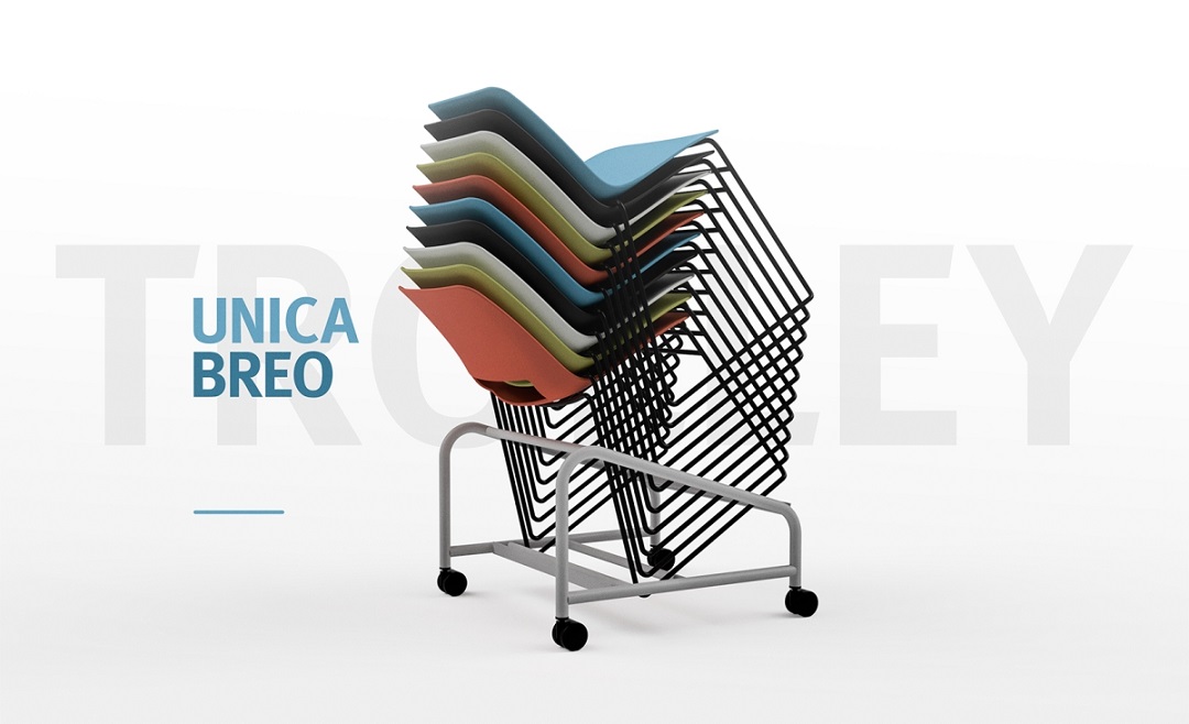 Stackable - Unica PP seat version stacks up to 5 high on the floor and 15 high on the trolley.