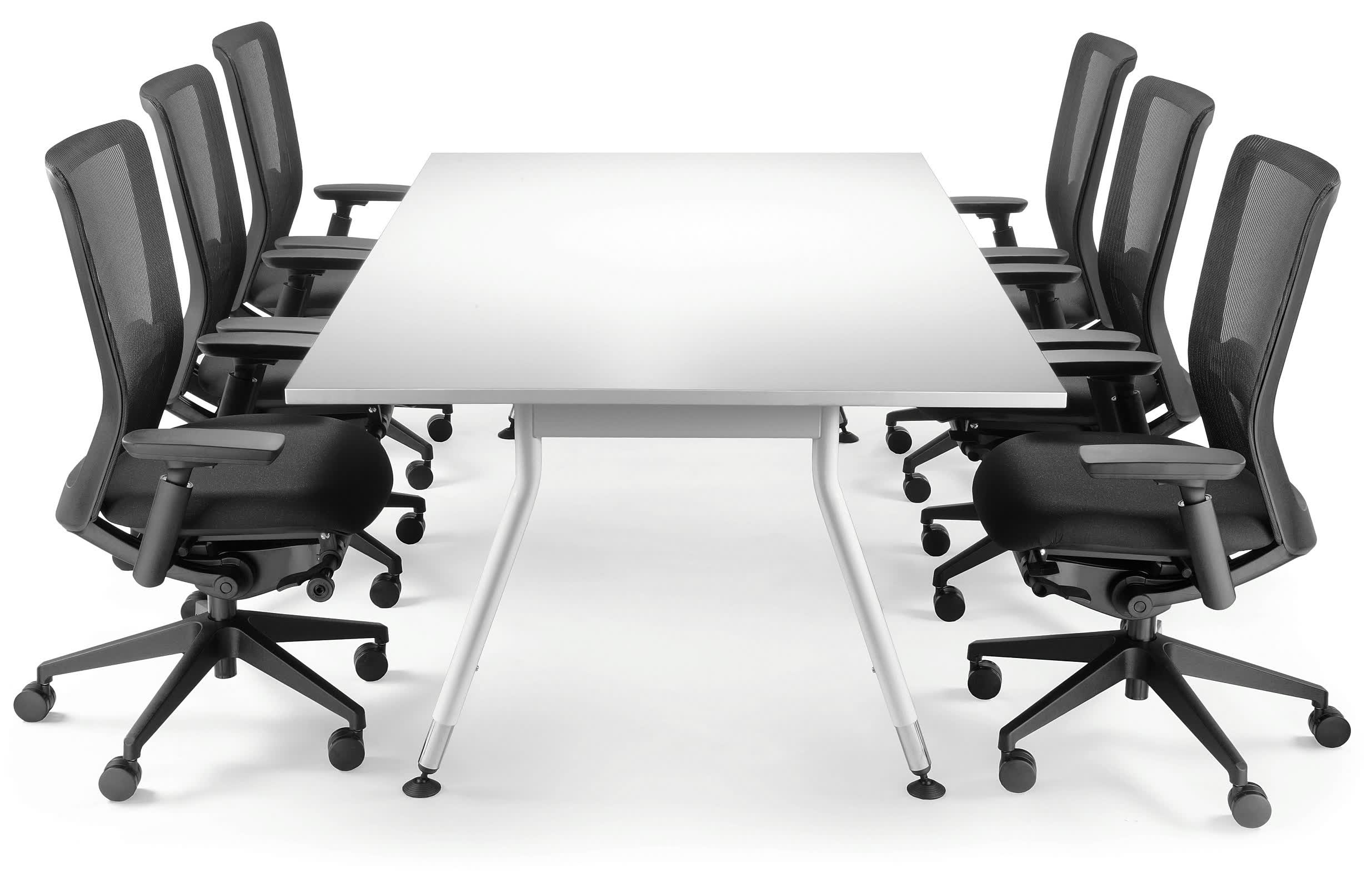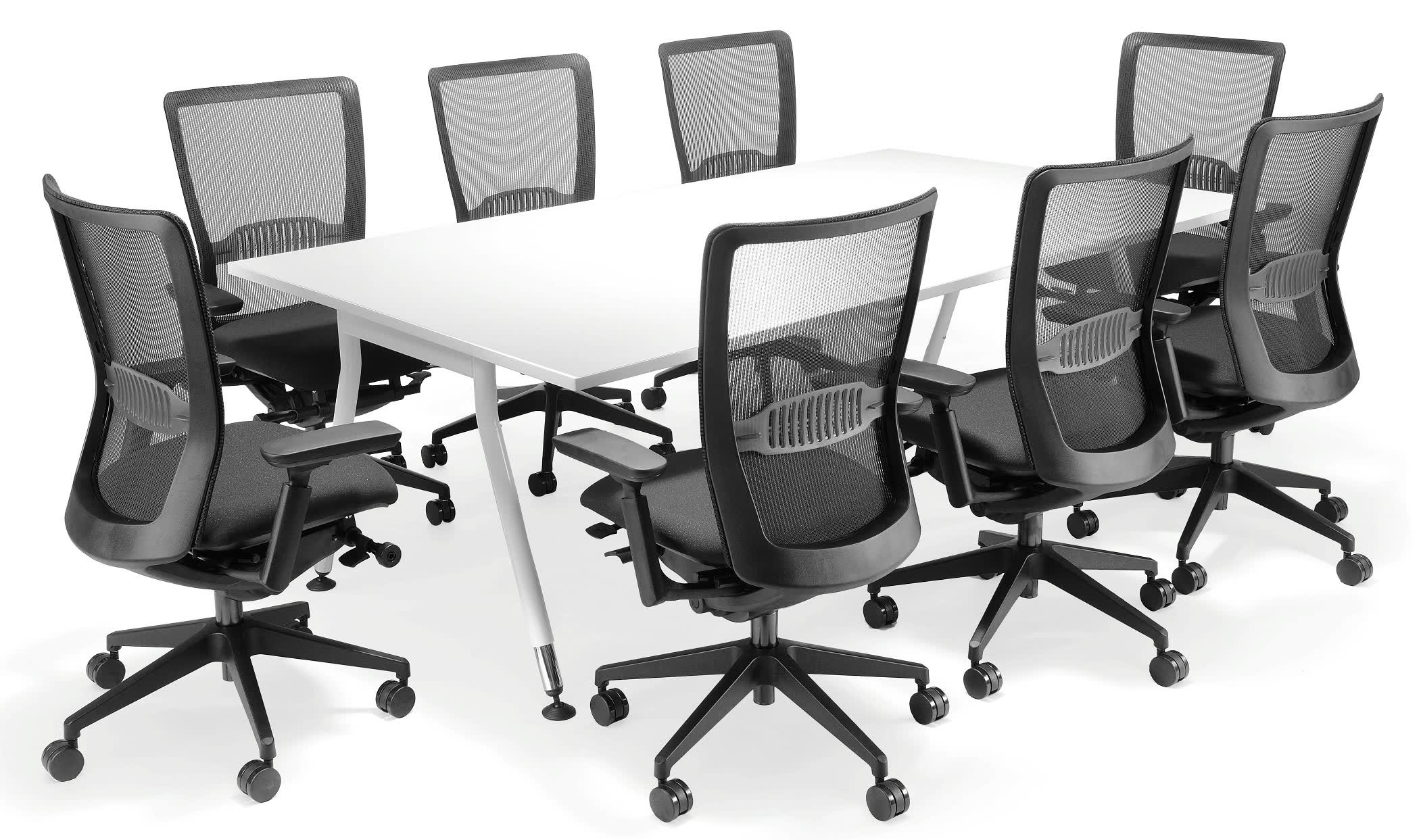 | Content | Vector Boardroom Meeting Table This beautiful, well-designed boardroom table has all the aesthetics to suit all office meeting rooms. With its modern and minimalistic design, this Boardroom Table is sure to make a statement in any Modern Office environment. With Frame available as Satin White or Matt Black with highlighted polished chrome feet, the Vector will undoubtedly suit any Interior.