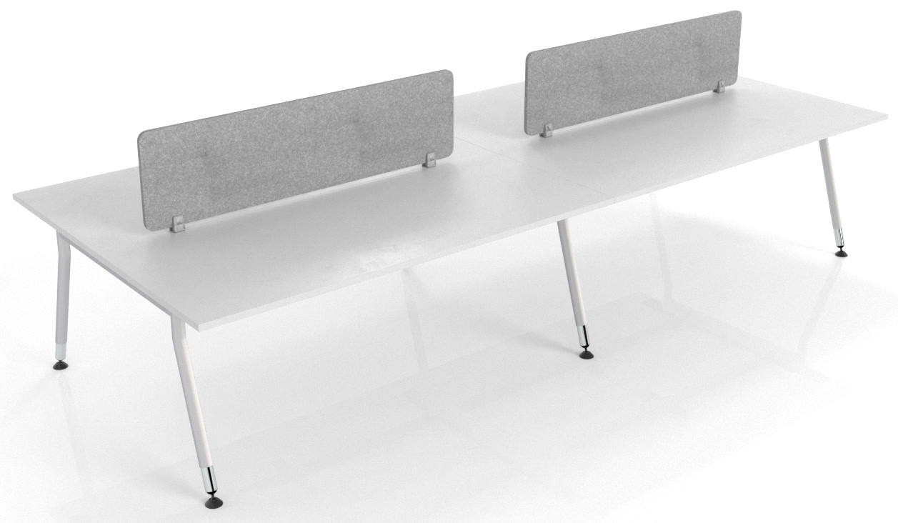 The Vee leg system effortlessly delivers a modern and clean look to any office and fit out. Unique in design and shape it is finished off with a highlight of polished chrome feet at the base. The frame system can be used in any configuration whether it is an L-shaped, back-to-back or 4-way cluster. The Modesty Panel is an additional $50 - $80.