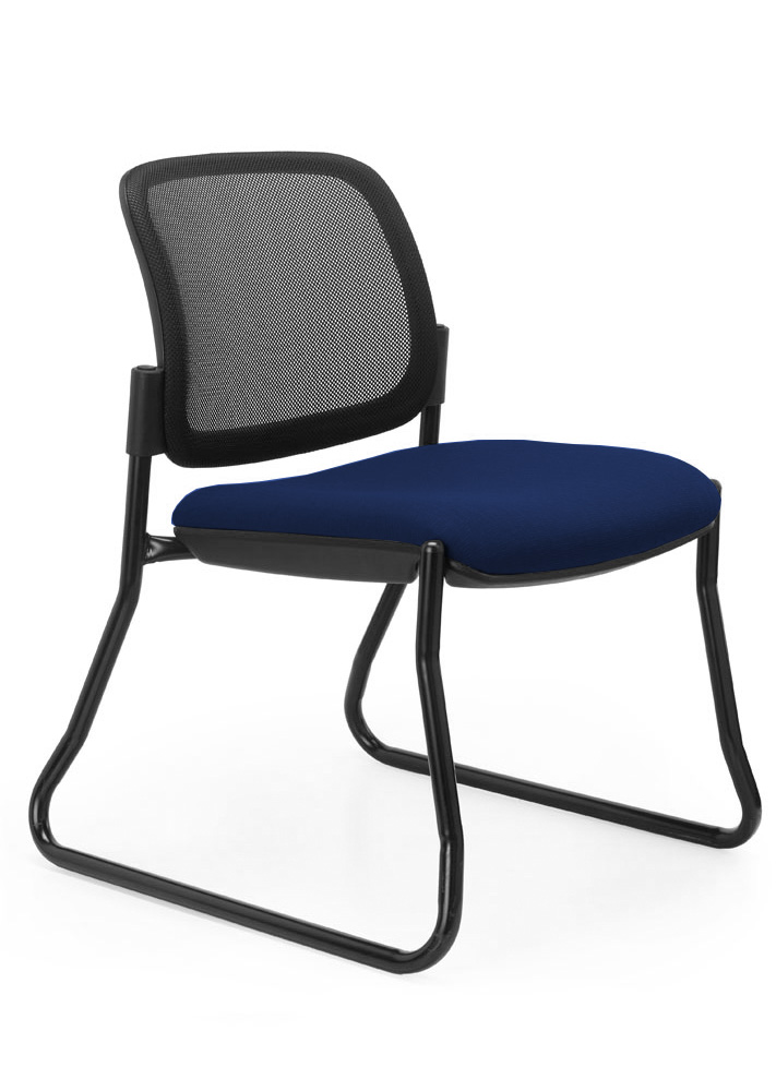 FEATURES: - Stackable - Sled Frame - Floor Gliders - Durable Mesh Back - Cushion seat and back - Black or Chrome frame - Chair Trolley available on request ( extra cost) Available in 5 Fabric and Black PU: - Red - Black - Charcoal - Lime - Orange - Black PU
