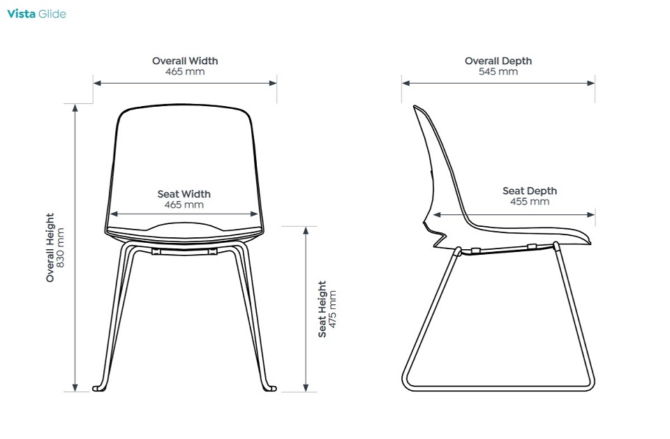 | Content | Vista Visitor Chair Seat: 465W x 455D x 475H Size: 465W x 545D x 830H