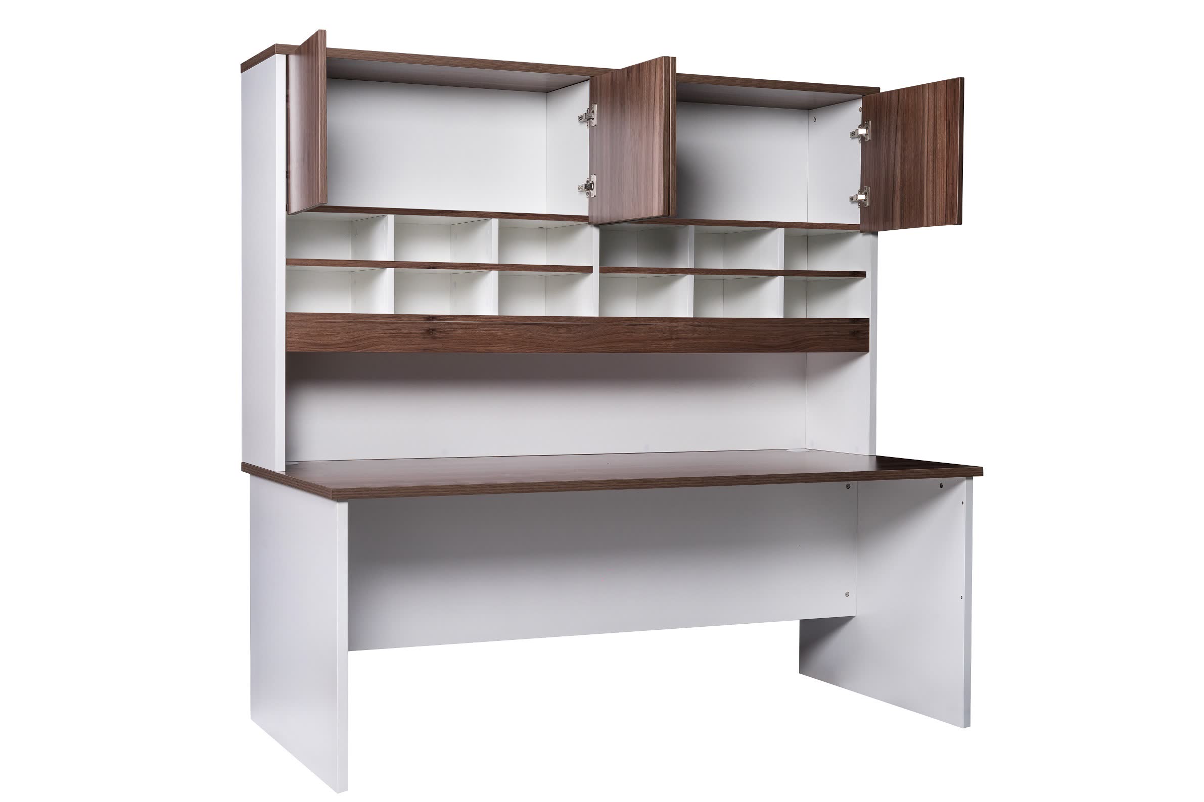 | Content | Premium Walnut Pigeon Hole Hitch With Overhead Cupboards Size: 1800W x 380D x 1080H - Casnan Walnut