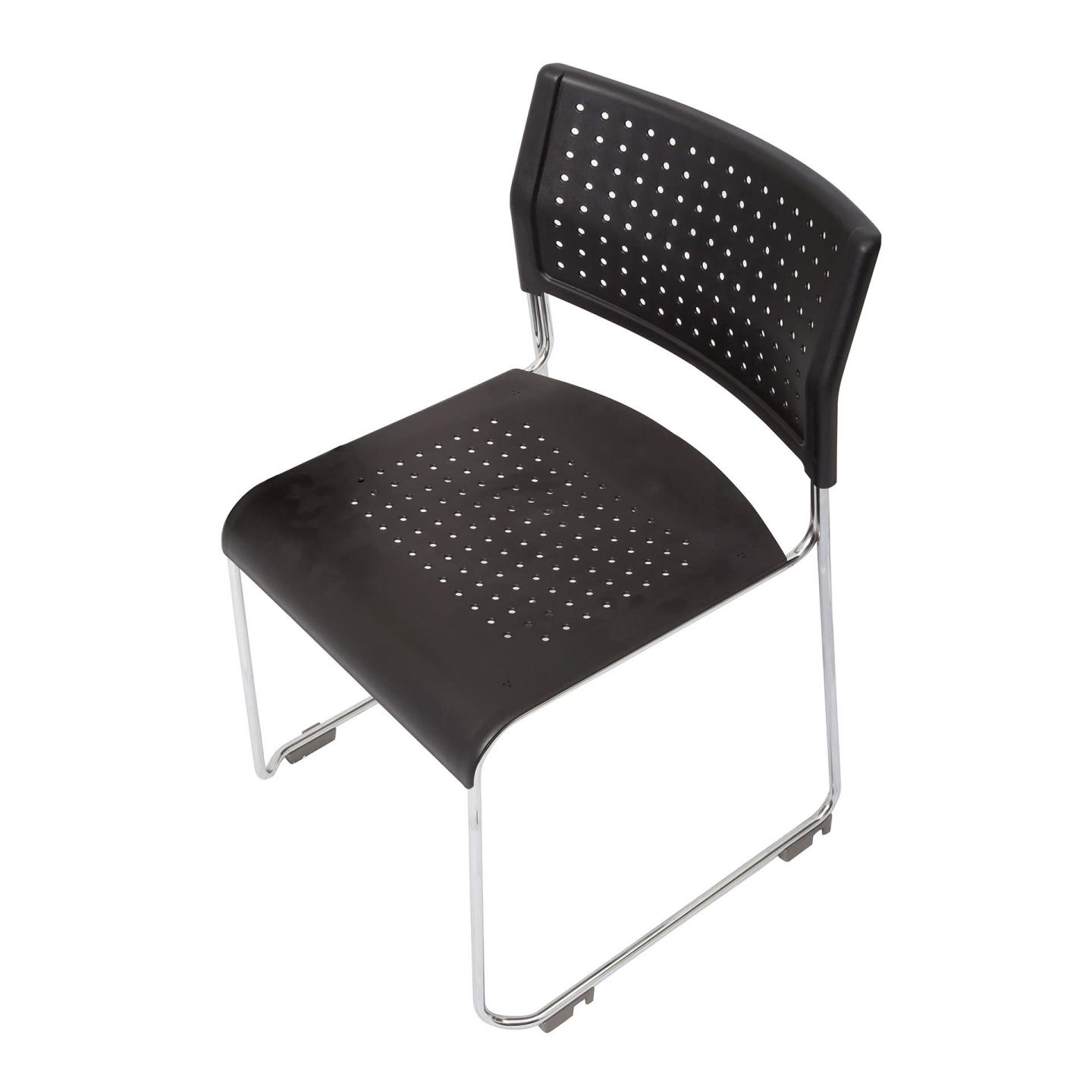 Very versatile chair with a black plastic perforated back waterfall seat and chrome steel rod sled base.