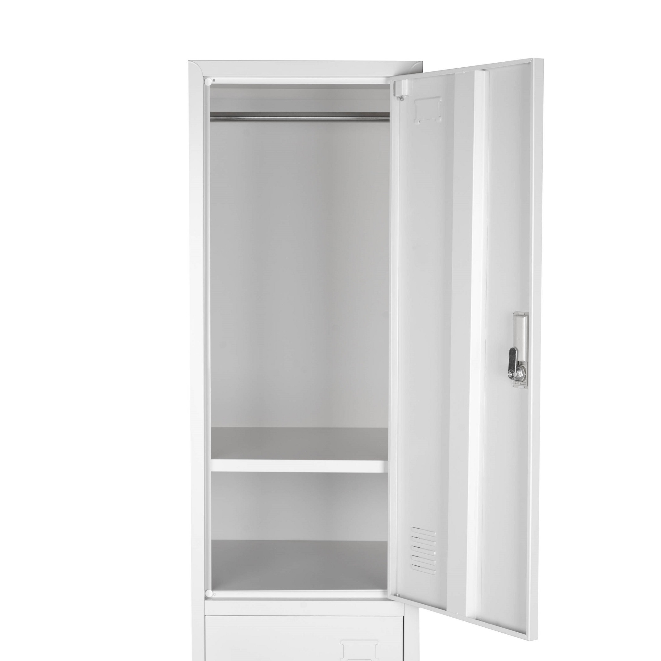 FEATURES: - Durable powder-coated - Thicken material 0.7mm - Heavy duty construction - Full length door stiffener rails - Hanging bar, mirror and shelves - Cam lock is fitted to the door - Coat hook is fitted to the door - Label holder at the front - 5 years warranty - Assembly $30