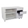 This unit is available with either a tambour side door or as an open shelf side and features two box drawers and one suspension file drawer.